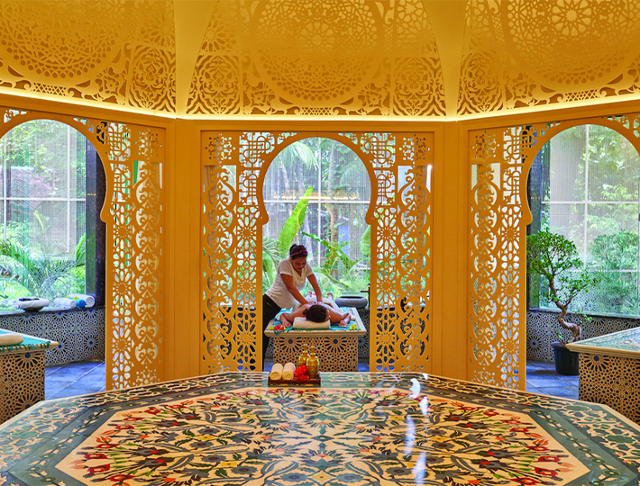 It is a detoxifying bathing ritual guided by our internationally trained therapists. The experience begins with a tranquil steam session, followed by the gentle application of Moroccan black soap and expert massage, culminating in a soothing exfoliation using a Kesa glove. This immersive journey of Moroccan hammam promises not only thorough cleansing but also a revitalizing transformation.