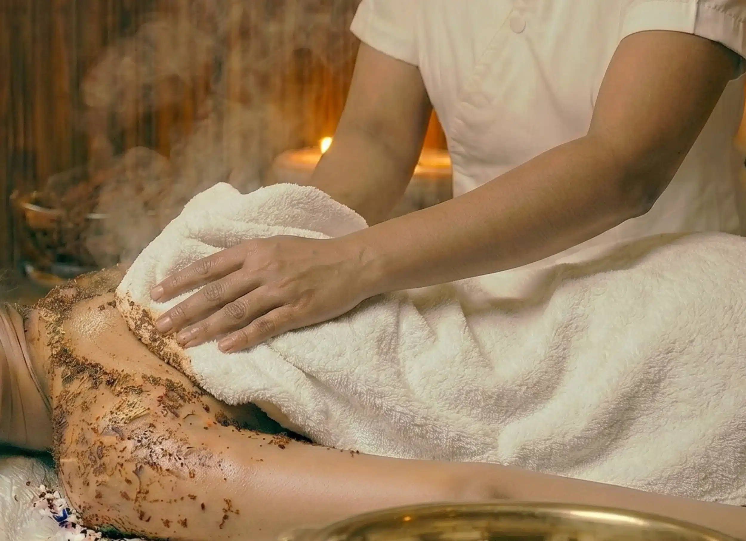 The treatment leaves skin feeling deeply cleansed, softened, and revitalised from head to toe.
