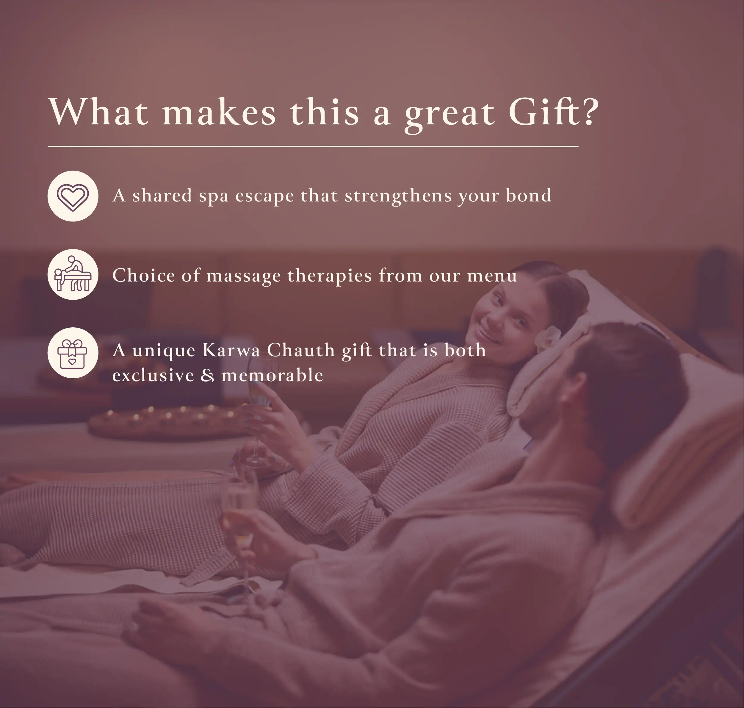 As the hours unfold, let this time together become a moment to reconnect, to care, and to truly celebrate each other. Thoughtful, memorable, and filled with warmth, this Karwa Chauth gift celebrates wellbeing and shared serenity, leaving you feeling cherished and rejuvenated.