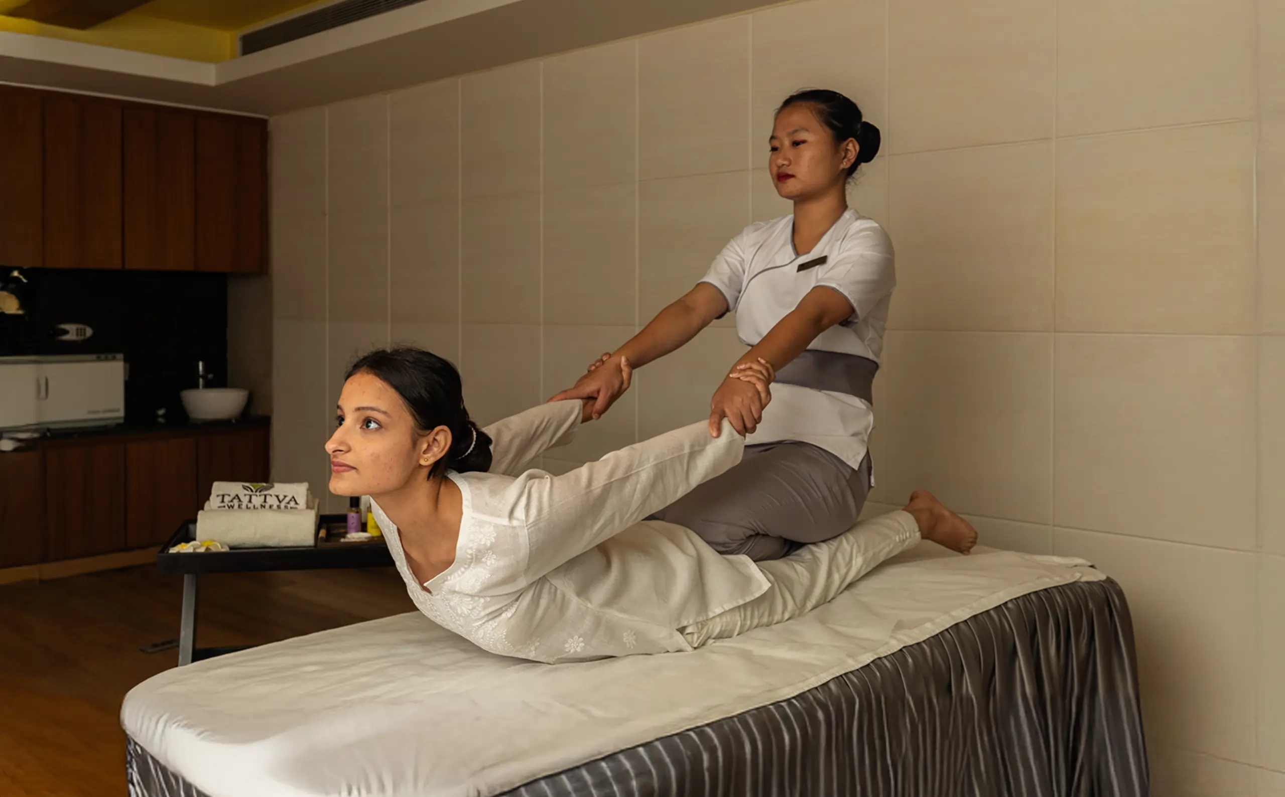 Full body massage therapies, on the other hand, are typically longer sessions that cover the entire body. These are designed to promote relaxation, reduce stress, ease muscle tension, and improve overall well-being. We offer different types of express therapies such as Deep Tissue massage, Swedish massage, Tattva Signature Massage, Jet Lag Therapy, etc