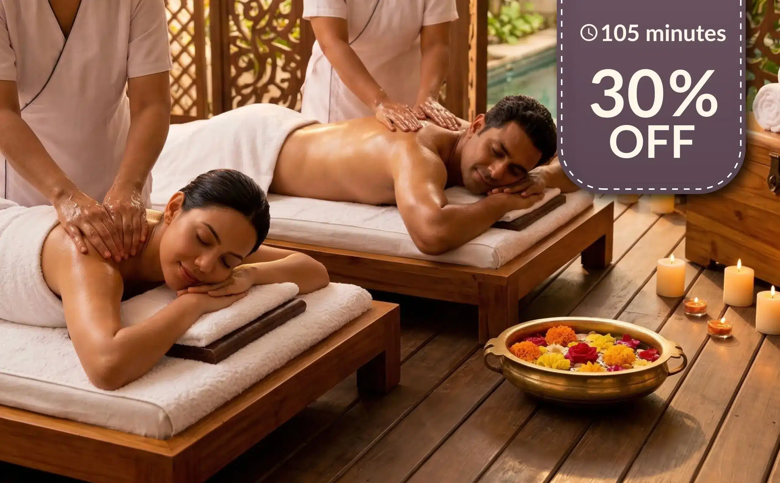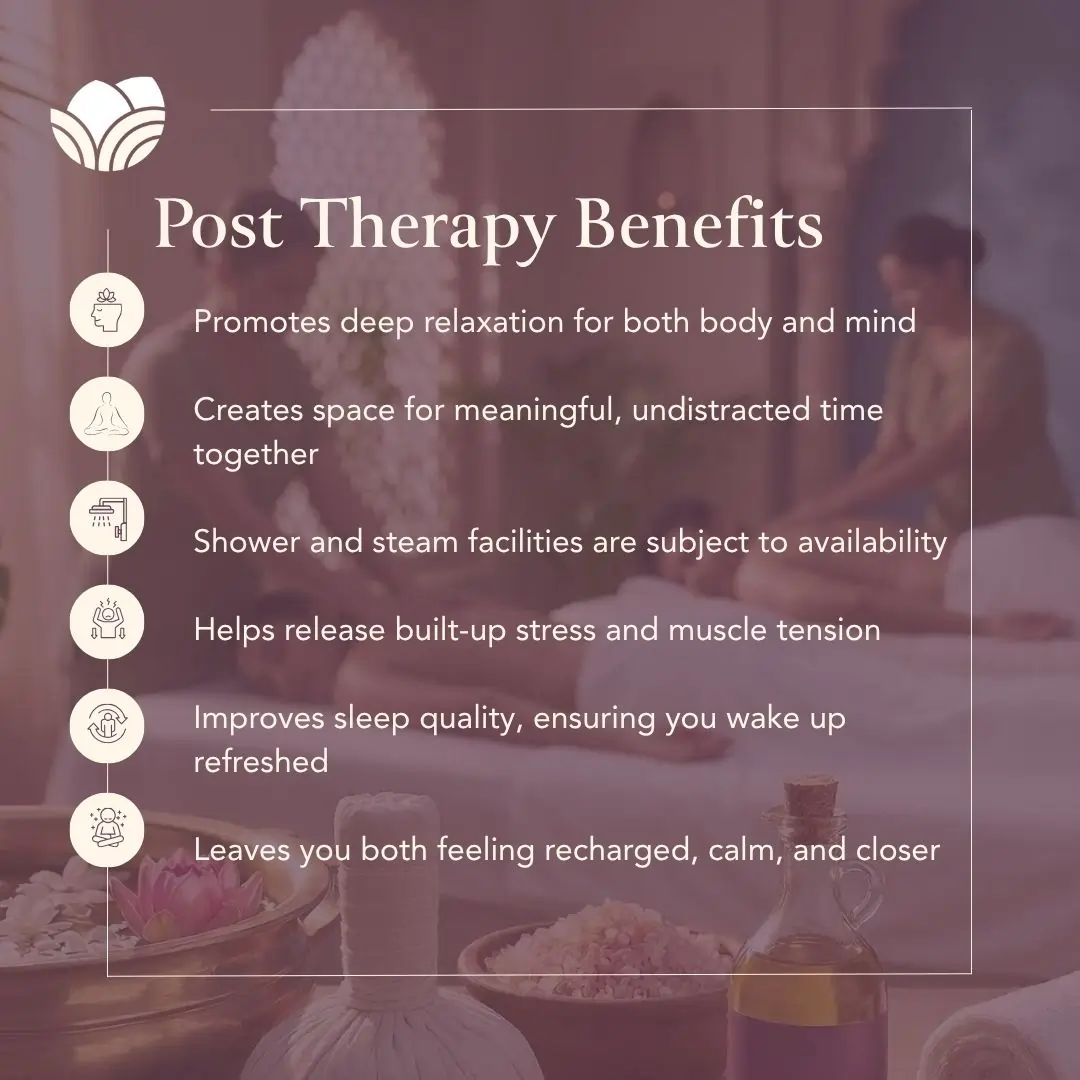 Indulge in the ultimate couples’ spa experience – The Everything Ritual is designed for two, blending the best of massage and body care into one luxurious 105-minute journey. Enjoy a Choice of Massage Therapies (60 mins) followed by a Choice of Body Scrub Therapies (45 mins), side by side with your loved one. Our most comprehensive offering, now at 30% off.