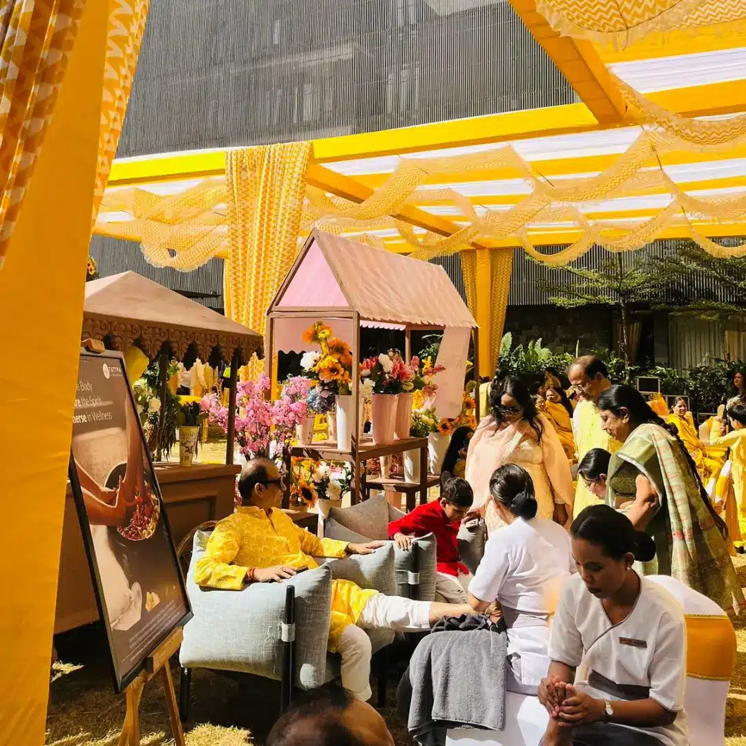 Whether it’s mehndi guests waiting their turn, friends catching their breath after a lively sangeet, or family easing into a busy haldi morning, the spa kiosk blends in effortlessly. It brings a warm, pampering presence to each function, making your hospitality feel personal and deeply considerate.
