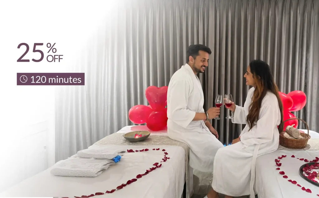 Indulge in pure bliss this Valentine’s with Tattva Wellness’ Vinotherapy Love Therapy—a grape and salt body scrub, soothing oil massage, romantic spa setup with Jacuzzi access, plus gourmet chocolates and a VILASA candle to keep the love glowing.